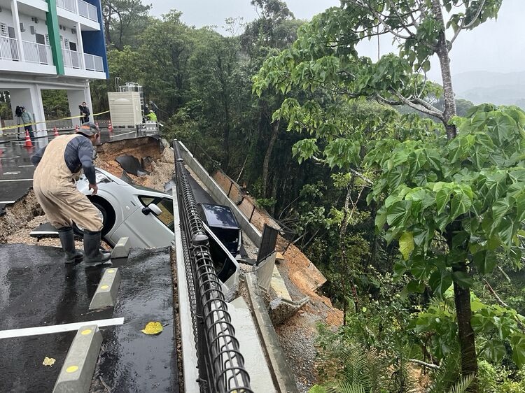一部分偏遠市區建在高台上的停車場就這麼滑落下去了😓