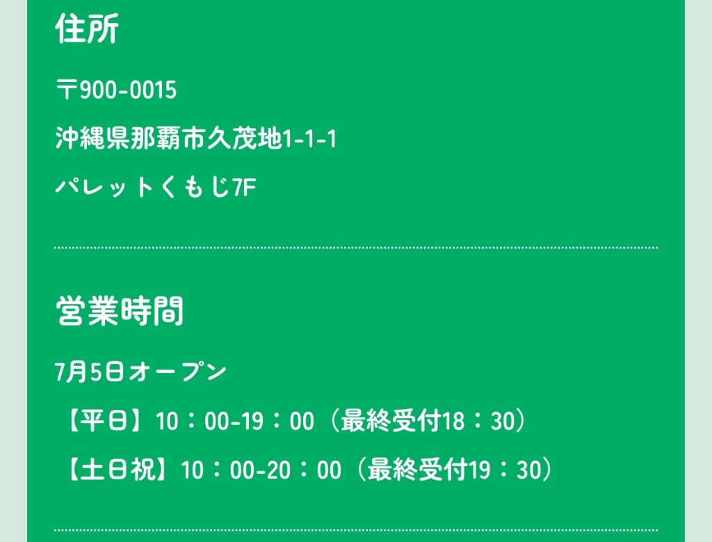 地址:〒900-0015 沖縄県那覇市久茂地1丁目1−1 7樓