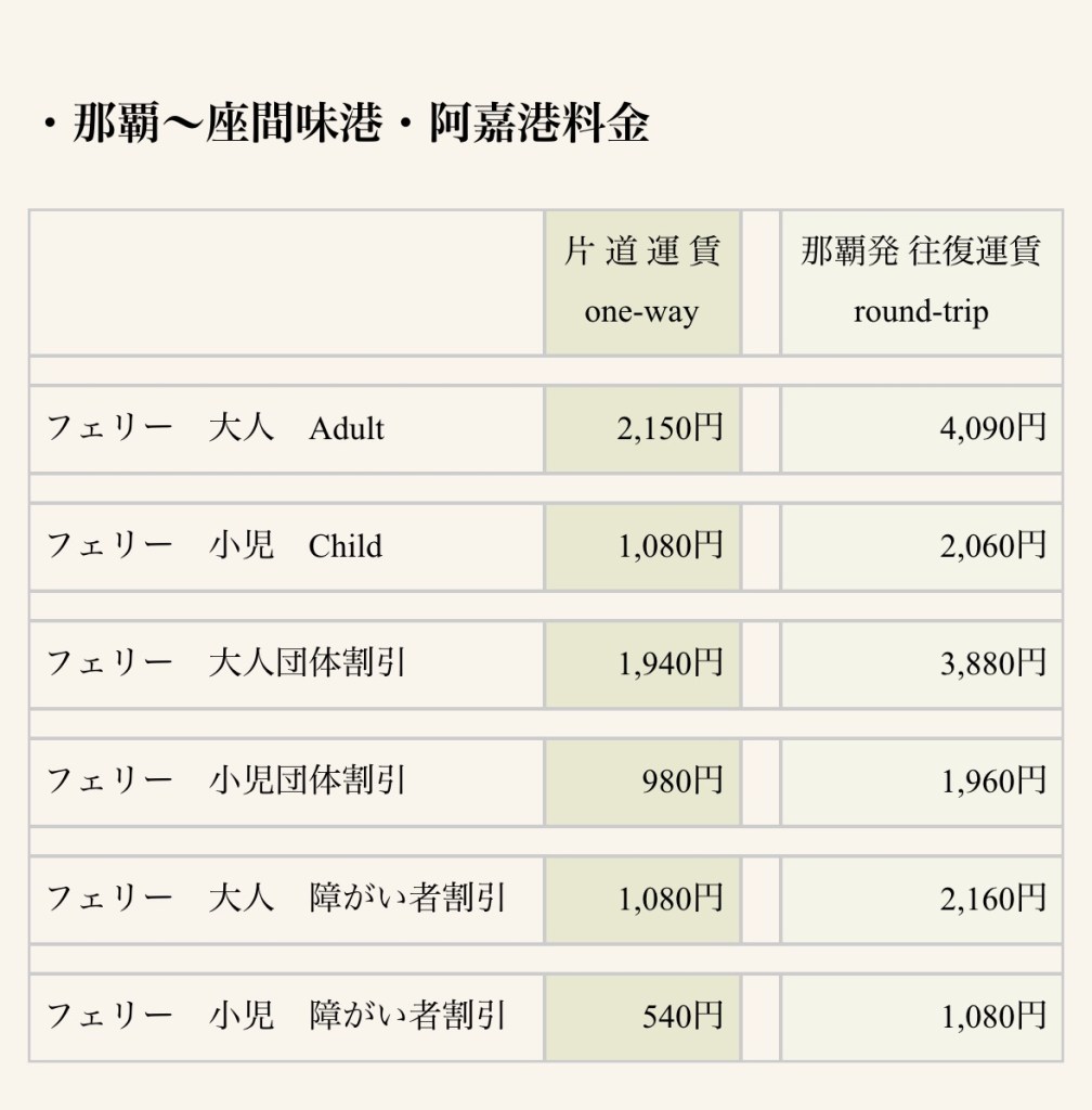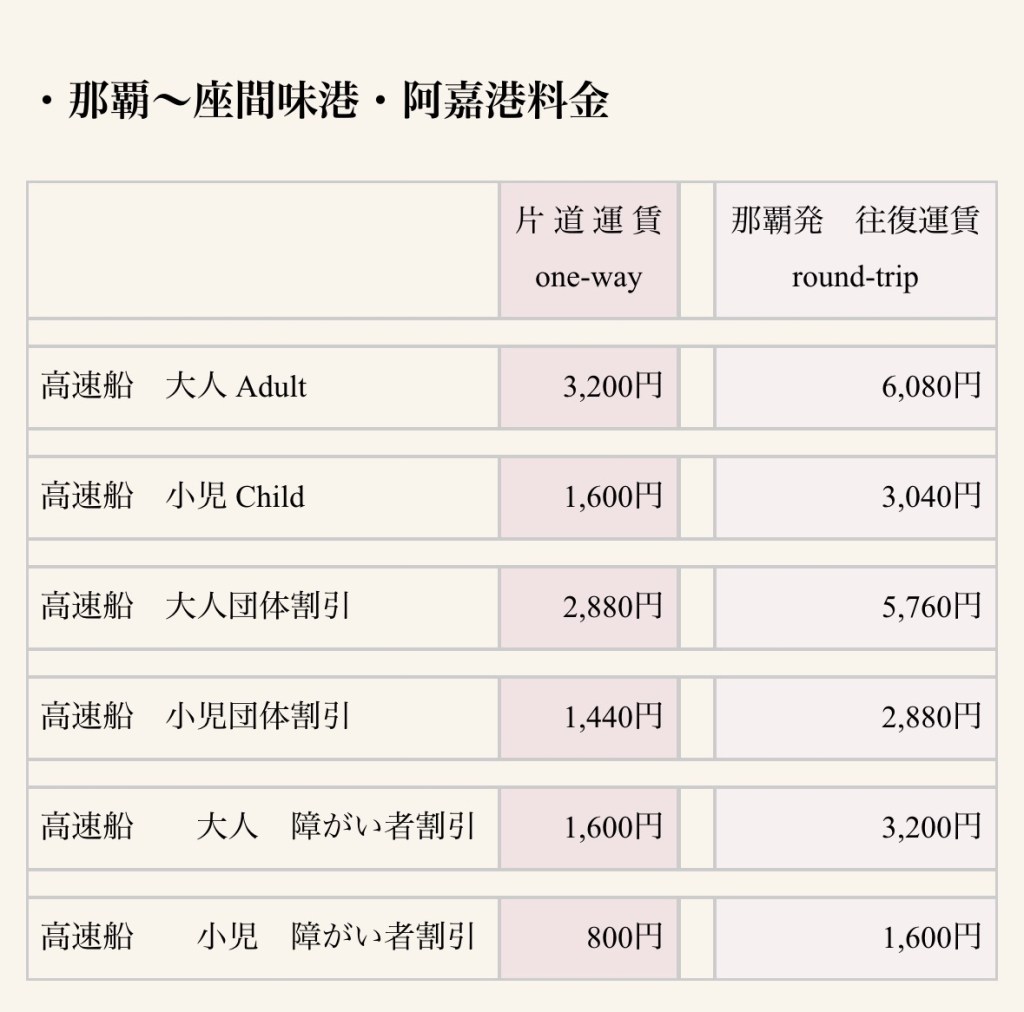 價格網站:https://www.vill.zamami.okinawa.jp/info/m/2013/02/pricelist.php