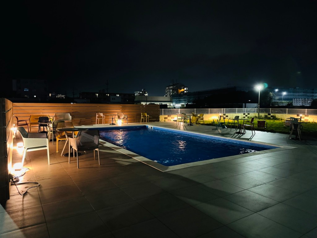 除了有游泳池可以利用之外、停車場也是免費停車