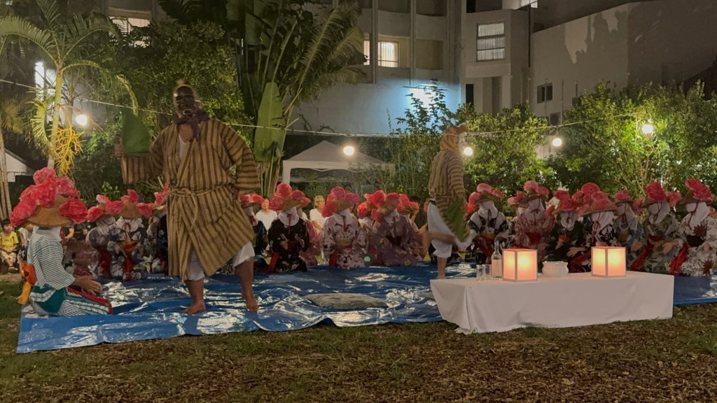 他們透過 珍問答 (chin mondō / 滑稽的問答)、舞蹈 (odori / Odori) 等方式,來祭祀與供養祖先的靈魂。