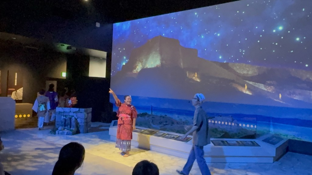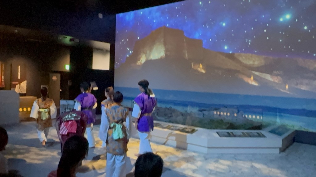 Synopsis: Visitors who expect to be at Amawari Park suddenly find themselves under the moonlit sky at Katsuren Castle, where a legendary “Festival of the Gusuku" is unfolding. Inspired by the anime “Katsuren Omorosoushi", this original live performance brings together Ryukyuan dance, karate, music, and song, presented on stage like a living picture scroll.