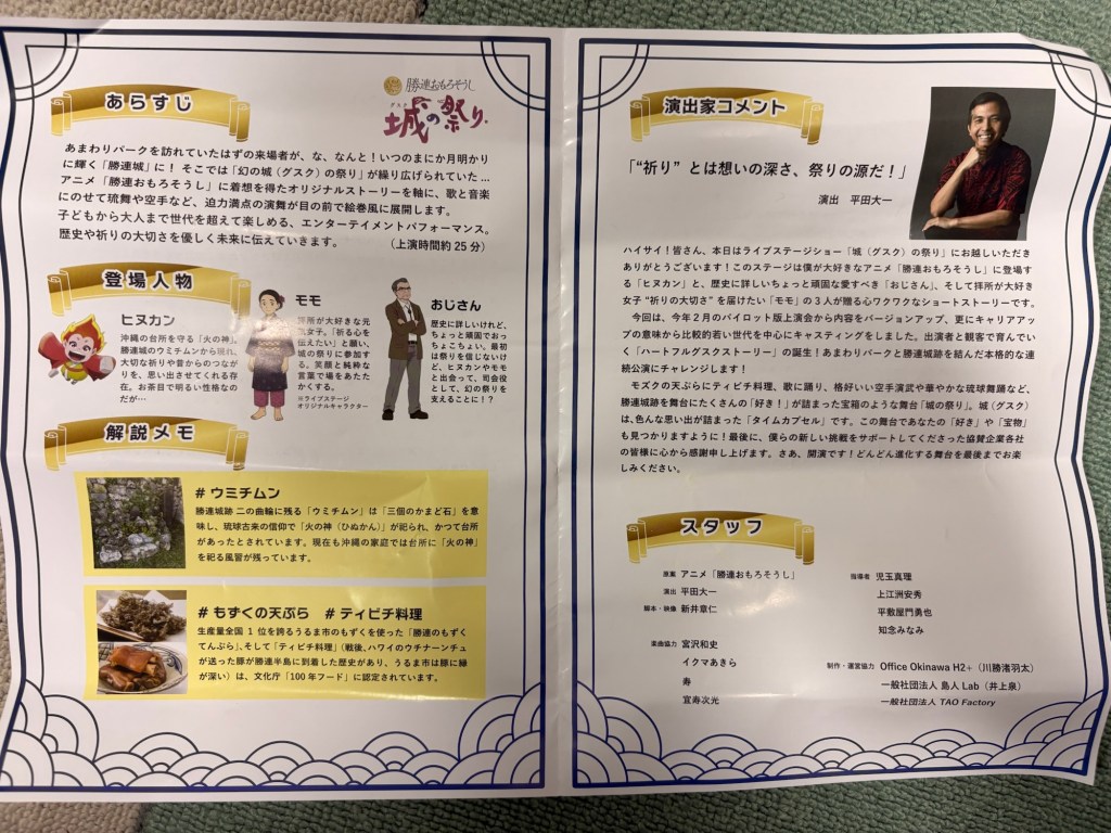 本場舞台劇靈感源自動畫《勝連御物草紙》,融合了琉球舞蹈、空手道、音樂與歌唱,以宛如活生生畫卷的方式搬上舞台。