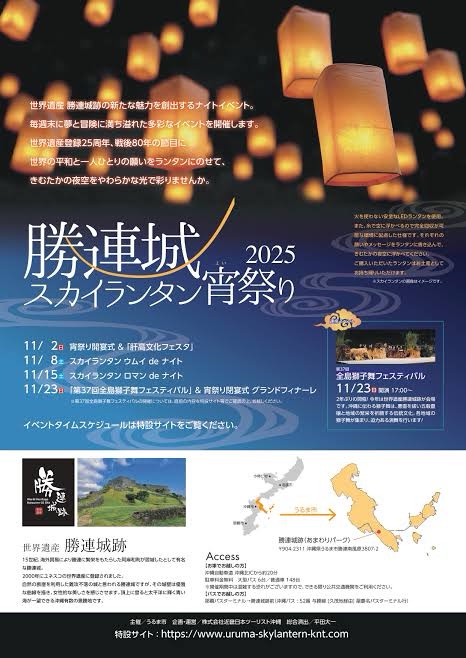 2025年11月的每一週、世界遺產勝連城都有放天燈的活動。
