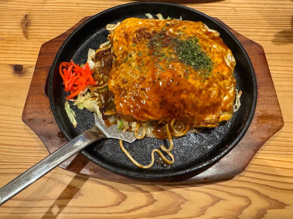 人氣料理:招牌廣島風鐵板炒麵蛋包(オムそば)
