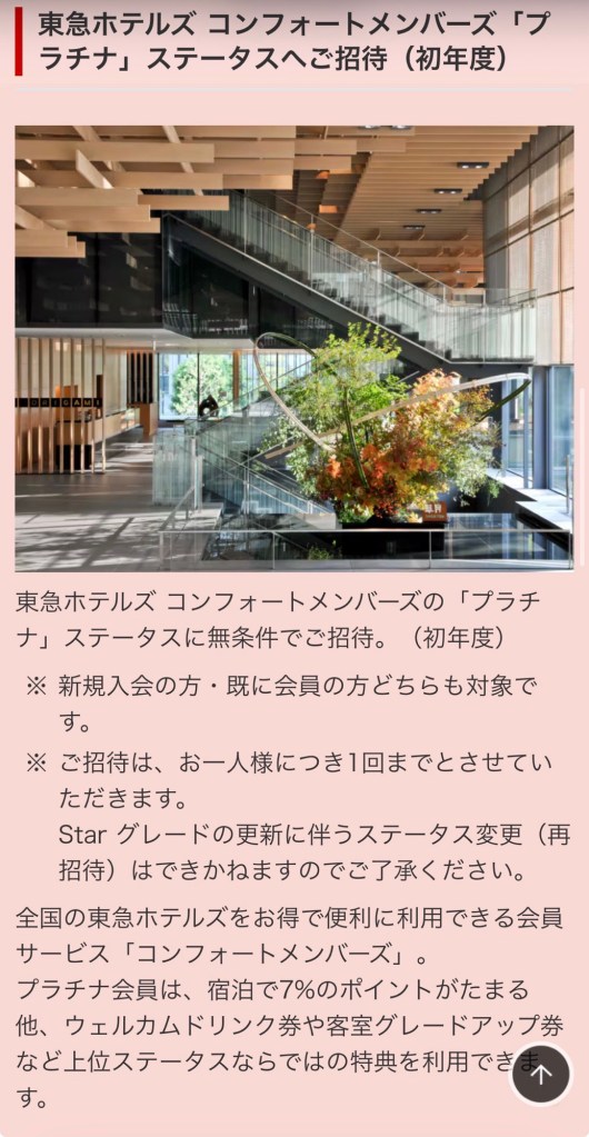 (コンフォートメンバーズの「プラチナ」ステータスへご招待)