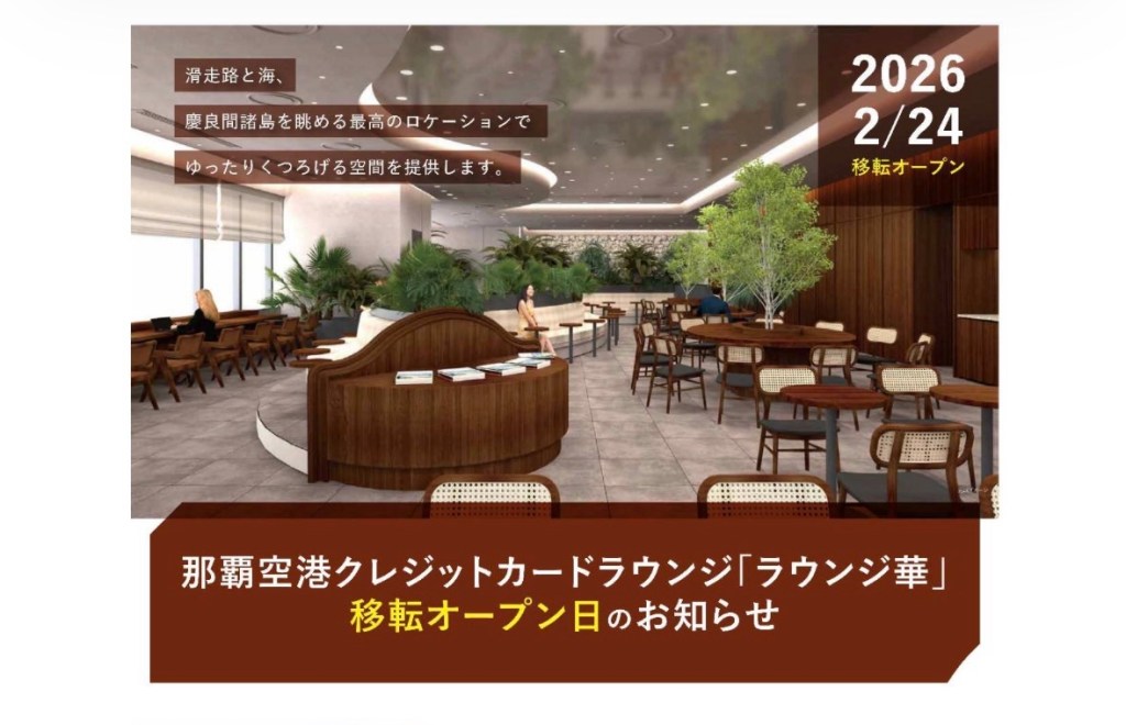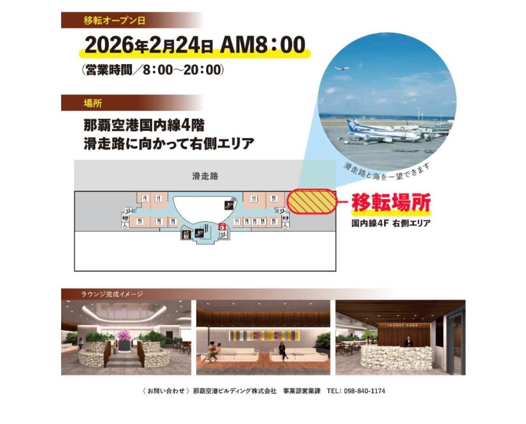 2026年2月24日那霸機場國內線限制區外1樓的貴賓室「LOUNGE HANA」、改到4樓視野好的地方囉👏