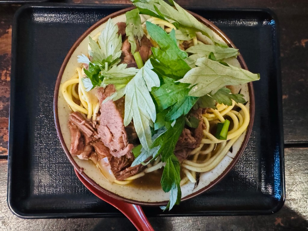不同於沖繩常見的豬肉沖繩麵,這裡使用大量燉煮的牛肉,湯頭清爽卻充滿牛肉香氣,是許多在地人從小吃到大的味道。